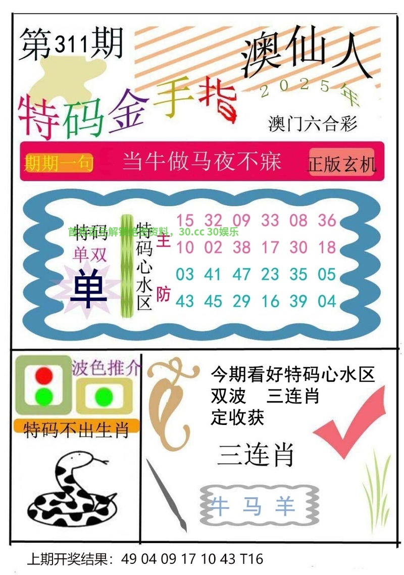 314期:七肖中特(兔牛狗猴虎鼠猪)开:羊23错